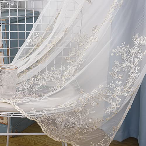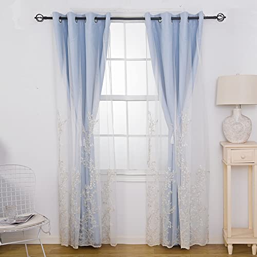 GYROHOME 2Panels Soild - Tende in velo ricamato, con occhielli per la camera da letto, 132 x 304 cm, Azzurro