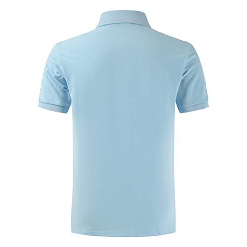GYSAFJ Camicia da uomo Estate Cotone Tinta unita Classico Mens Polo Manica Corta Casual Top, Azzurro, XXL