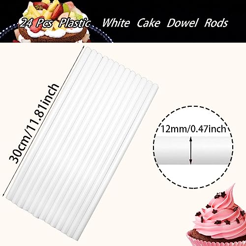 GYSRXS 24 Pezzi Pioli per Torte a Piani Riutilizzabili Aste di Supporto per Torta 30cm Bastoncini per Torta per Costruzione di Torte a più Livelli,Diametro 1,2cm(Bianco)