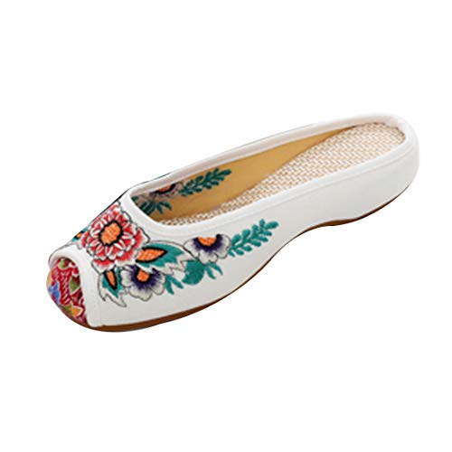 GYUANLAI Sandali Ricamati Modello Donna in Stile Cinese Opera di Pechino Pantofole Suola in Tela Oxford Senza Schienale