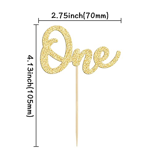 Gyufise 24Pcs One Cupcake Toppers Oro Glitter Primo Compleanno Baby Shower Cupcake Picks Baby Shower Bambini Ragazzi Ragazze 1 ° Compleanno Party Cake Decorazioni Forniture