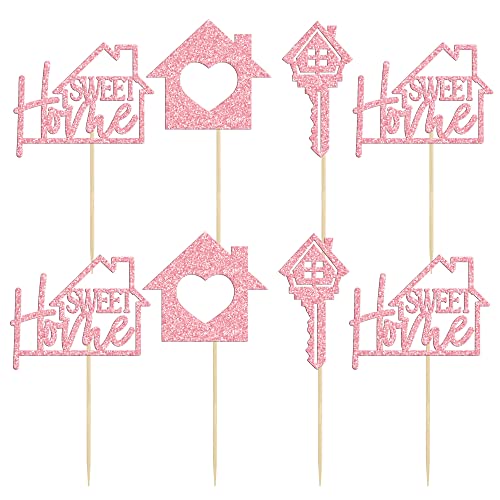 Gyufise Confezione da 24 topper per cupcake Sweet Home con chiave glitterata per inaugurare la casa, per il benvenuto a casa, decorazioni per torte e feste, colore: rosa