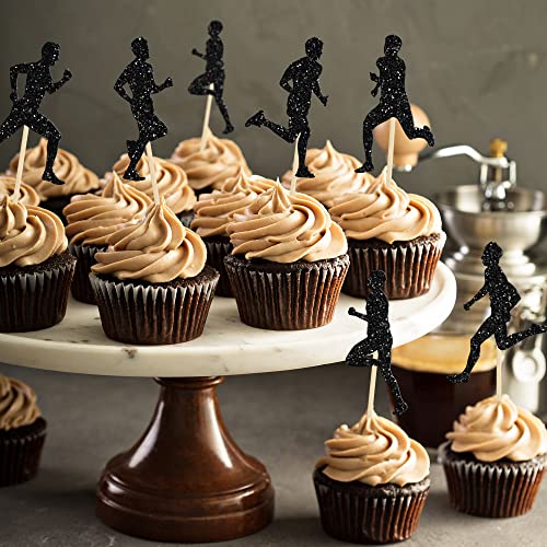 Gyufise 24 pezzi in esecuzione Cupcake Toppers Nero Glitter Sport Fitness Cupcake Picks per l'esecuzione a tema ragazzi ragazze festa di compleanno decorazioni per torte forniture