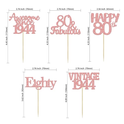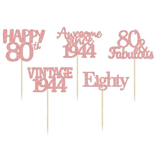 ♡ Questi topper glitter oro rosa 80 sono così carini e buoni per feste a tema vintage 1942, 80° compleanno, 80° anniversario di matrimonio, festa di compleanno. Possono rendere il tuo cupcake più attraente e portare il divertimento alla tua festa. Puoi anche applicarli per gelati, frutta, biscotti e altri dessert.