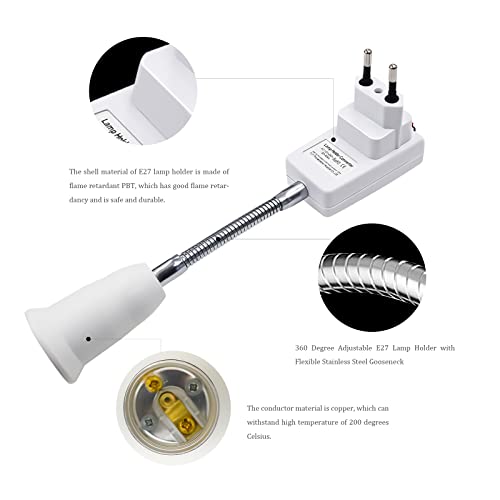 【Regolabile a 360 gradi】Portalampada E27 con collo di cigno flessibile in acciaio inox. Grazie al collo di cigno flessibile, il portalampada può essere ruotato di 360 gradi per adattarsi a una presa di casa, in modo da poter regolare l'angolo e la direzione dell'illuminazione secondo necessità, godetevi una buona esperienza di luce.