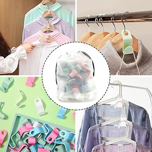 Connettore Appendiabiti: Riceverai 50 grucce connettori e custodia (bianco * 20, blu * 10, rosa * 10, verde * 10), per soddisfare le tue esigenze di stoccaggio per grandi quantità di vestiti. Mantieni il tuo armadio pulito e ordinato.