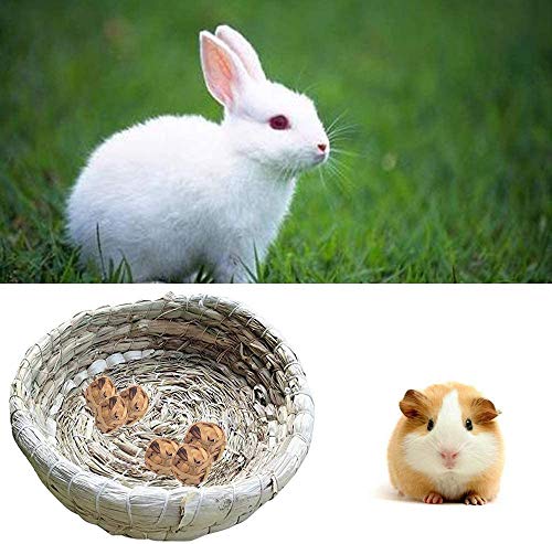 GZGZADMC - Letto portatile per animali di piccola taglia in erba intrecciata per piccoli animali, conigli, criceti, porcellini d'India, gabbia, nido da masticare per animali domestici, 22 x 22 cm