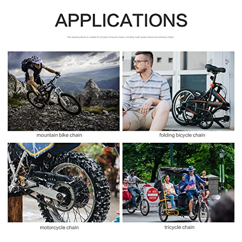 Facile da usare: basta aprire il coperchio del pulitore per catena della bicicletta, posizionarlo sulla catena, chiudere la copertura, aggiungere liquido detergente, ruotare il pedale per avviare la pulizia. Rimuove facilmente lo sporco e lo sporco. Non è necessario rimuovere la catena dalla bicicletta, comoda ed efficiente.