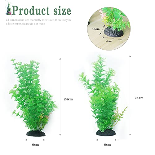 Contenuto della confezione: 8 piante artificiali verdi in plastica (4 per ogni 2 stili), altezza: 24 cm, lunghezza base: 6 cm, larghezza base: 4,5 cm. Piante artificiali decorative adatte per una varietà di acquari o pesci.