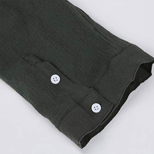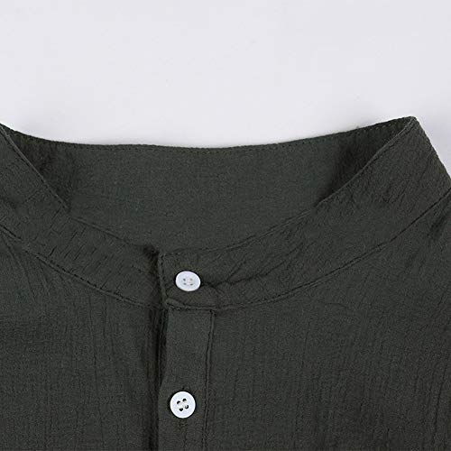 GZHOUSE Camicie Uomo Casual 3/4 Manica Solido Stand Collare Mens Camicia Allentato Camicetta Traspirante Verde militare XL