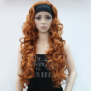 Gzhuang Mezza parrucca parrucca 3/4 con fascia lunga capelli sintetici ricci per donne