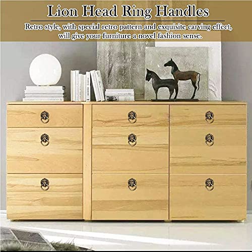 GZLFH Retro Battiporta Leone, Bronzo Anello di Trazione per Cassetti, 4 Pezzi Pomelli per Mobili Vintage, Con 8 Viti 1 Cacciavite, per Armadio Comò, Maniglie per Mobili da Cucina