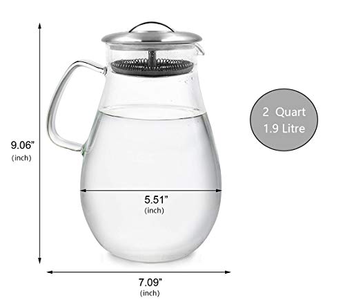 Il materiale di questa caraffa in vetro è in vetro borosilicato di alta qualità, resiste a temperature da -20 ℃ a 150 ℃, in modo da poter versare acqua bollente al suo interno in modo sicuro.