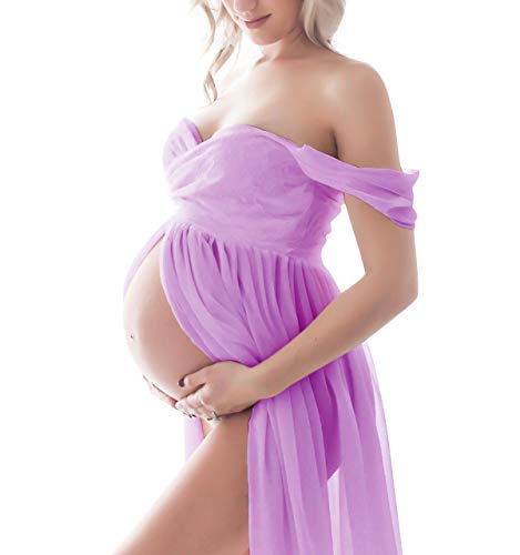 H1ING: Abito premaman per fotografia, senza spalline, abito in chiffon diviso, maxi abiti gravidanza per servizi fotografici., Volett, L