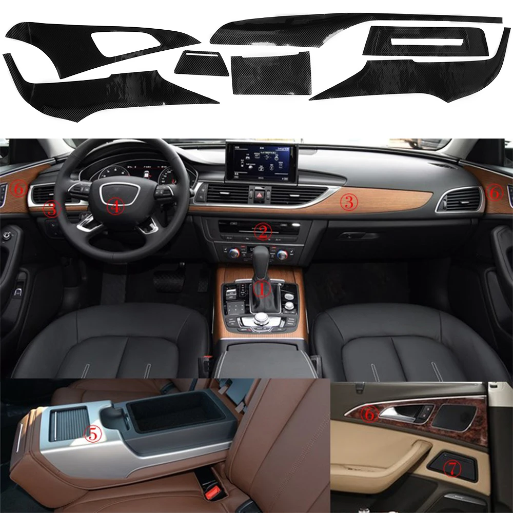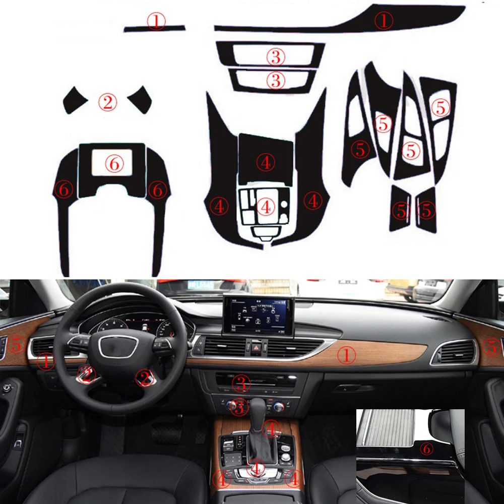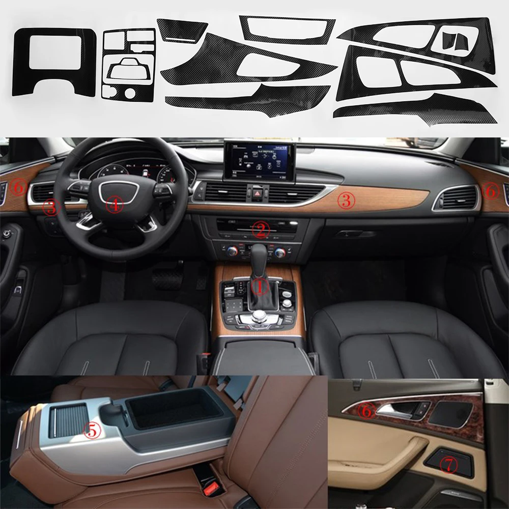 H2CNC 5D Carbon Fiber Car Interior Stickers Central Control Panel Dashboard Decal Car Styling Trim Kit For Audi A6 2012-2020