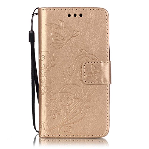 LG Leon 4G LTE H340N /C40 /C50 Custodia,Funyye LG Leon 4G LTE H340N /C40 /C50 Pelle Libro Copertura Con Cordino Shell Supporto Stand Porta Carte Portafoglio Flip Wallet Cover Chiusura Magnetica Protezione Caso Elegante Fiori e Farfalle -Dorato