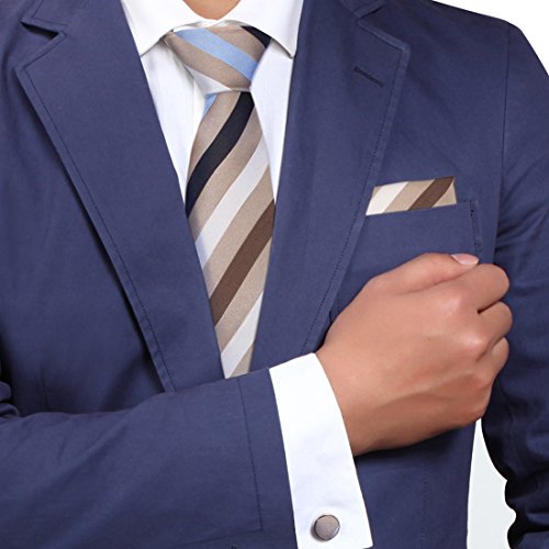 Y&G H5160 Brown Stripes Boss presenta per Boss cravatta di seta Cufflink Fazzoletto ??Set 3PT