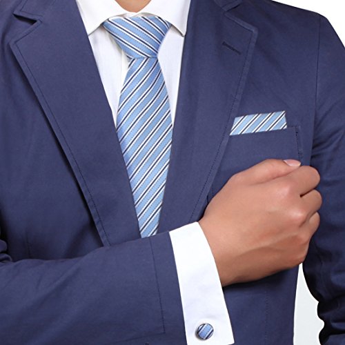 Y&G H5197 Blue Stripes Eccellente presenta Silk Tie Fazzoletto ??gemelli bel regalo Box Set 3PT