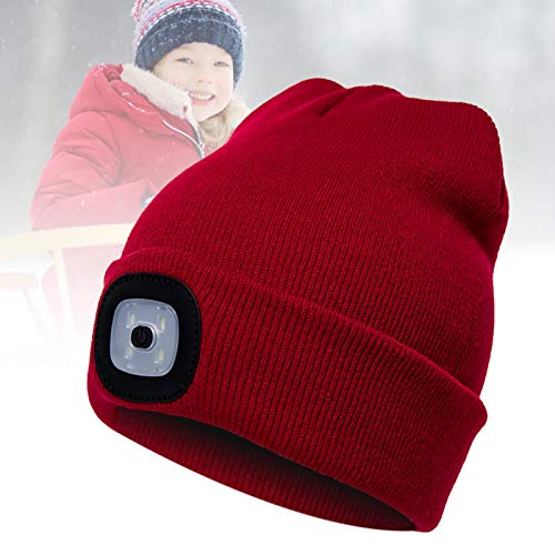 Materiale sicuro: il cappello lavorato a maglia con luce LED è realizzato in morbido materiale lavorato a maglia, alimentazione tramite 2 batterie butoon (incluse)