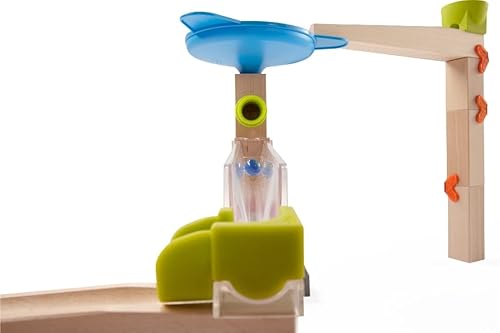 Tutti gli elementi della pista a sfera HABA possono essere combinati: i classici elementi della pista a sfera, realizzati con un sacco di legno, possono essere combinati facilmente e rapidamente con emozionanti velocità ed elementi sonori dei nuovi set complementari o dei pacchetti base.