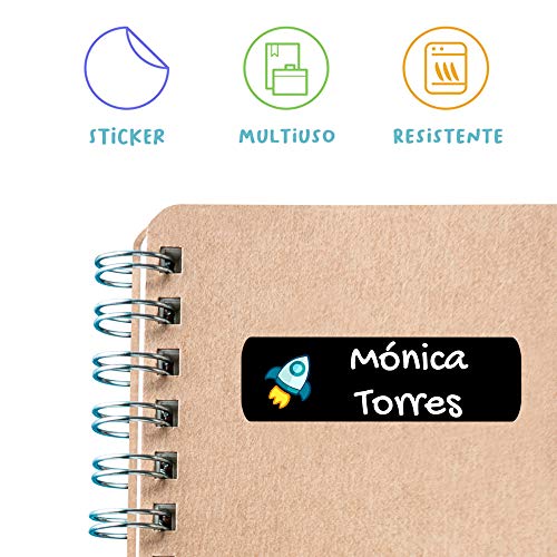 Haberdashery Online - 50 Etichette Adesive Personalizzate 6x2 cm per Marcare Oggetti, Libri, Scatole Pranzo, Matite, Quaderni Scuola, Vestiti, Resistenti e Impermeabili - Nero, Vinile