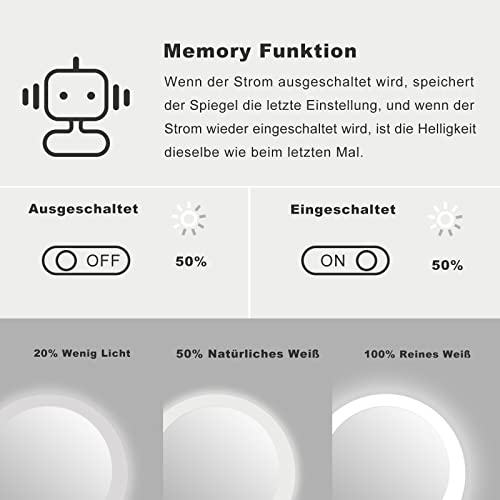 ✔ [Montaggio sicuro e facile] Lo specchio di illuminazione è levigato e lucidato con semplici istruzioni di montaggio, viti di fissaggio e ancoraggi. Tutti i bordi dello specchio sono ben realizzati e il materiale ecologico garantisce la massima protezione per le vostre famiglie. Specchio da bagno illuminato