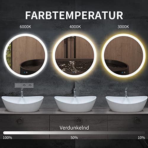 ✔ [Dimensioni e funzione dello specchio da bagno] Dimensioni: Ø 80 cm, con cornice in acrilico, l'acrilico lo rende più luminoso rispetto ai normali specchietti LED, 3000 K --6000 K luce bianca calda, design moderno ed elegante migliora il vostro bagno, con funzione anti-appannamento, mantiene lo specchio asciutto e migliore per il lavaggio del viso e il trucco, specchio con illuminazione