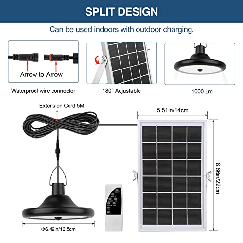 【Utilizzo All'interno o All'esterno】La lampada a sospensione solare e il pannello solare sono separati. Ogni luce è collegata al pannello solare tramite un cavo di 5 m, che consente di lasciare il pannello solare all'esterno mentre si appende la luce all'interno o sotto il tetto, e di regolare l'angolo del pannello solare per un'esposizione solare ottimale.
