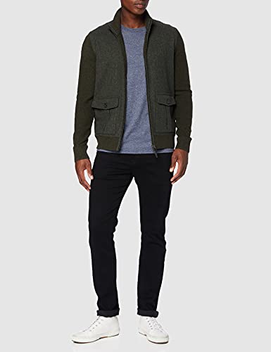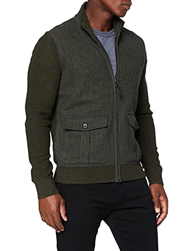 Hackett London Uomo Fabric Front Fzip Cardigan, Verde (Dark Olive 768), S