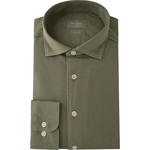 Hackett London GARMENT DYED PIQUE, Camicia, Uomo, Verde (Oil Green), L