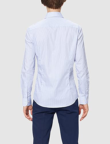 Hackett London Uomo Twill Two Col Str camicia, 8aswhite/Blue, 56