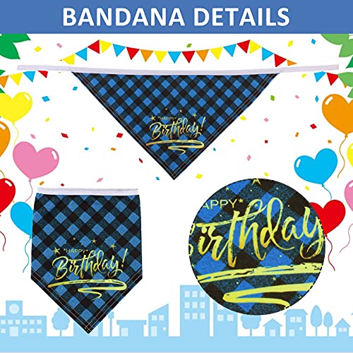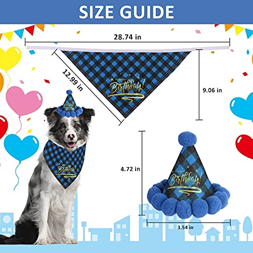 HACRAHO Bandana e Cappello per Cani, 2 PZ Buon Compleanno Compleanno Cane Bandana e Cappello Regolabile Plaid Cane Bandana Cappello Sciarpa Triangolare, Blu