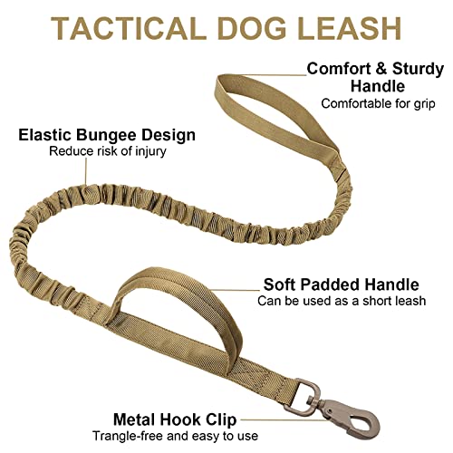 HACRAHO Set Collare e Guinzaglio per Cani Tattici, Collare e Guinzaglio per Cani in Nylon Resistente Guinzaglio per Cani in Nylon con Fibbia Regolabile per Cani di Taglia Media, Cachi, M