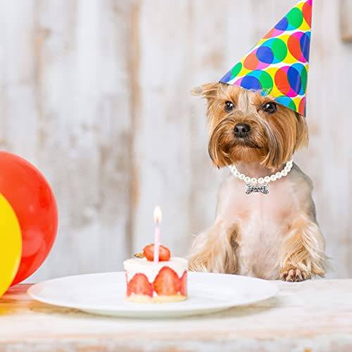 HACRAHO Collare di Perle per Cani, 2 Pezzo Collare per Gatti con Strass Bling Collare per Collana per Cani con Perle Regolabili con Ciondolo in Osso, Viola e Bianco