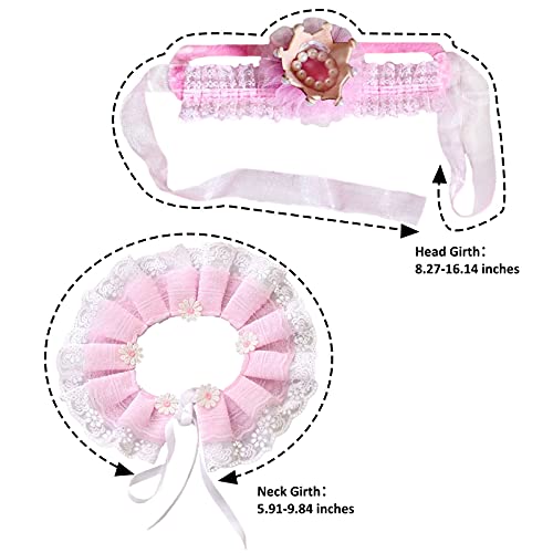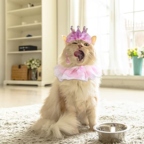HACRAHO - Costume a bandana per gatti, 2 pezzi, in pizzo, a forma di gatto e con corona di gatto, colore: Rosa