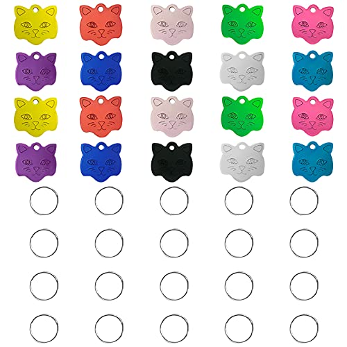 HACRAHO Etichette per cani, 20 etichette colorate per animali domestici, in alluminio, con 20 anelli portachiavi per cani, gatti, cuccioli, gattini, testa di gatto