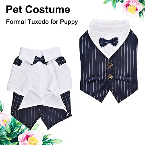 Design unico: lo smoking per cani è progettato con un gilet blu e una camicia bianca, e lo smoking è decorato con un papillon, che sembra formale e delicato. Quando il tuo cane lo indossa per partecipare alle feste, sembrerà un gentiluomo.