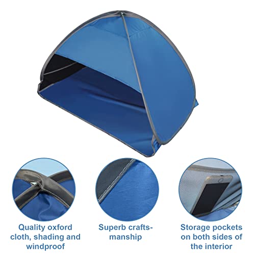 HACRAHO Tenda da sole pop-up da spiaggia, 1 confezione da 1 tenda pieghevole da spiaggia per mini tenda anti-UV, per esterni, campeggio, picnic, spiaggia, colore nero, blu, M