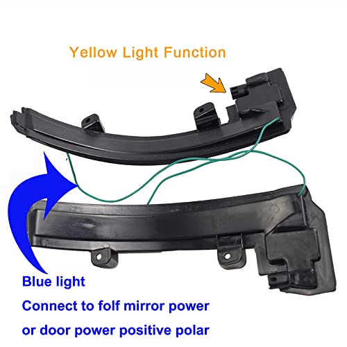 Colore chiaro: blu-giallo. Quando chiudi o sblocchi l'auto, prima mostra il giallo, poi diventa lentamente blu fino al pieno nella barra. Questo effetto continua per 10-15 secondi. Quando giri a sinistra oa destra, mostra il giallo, quindi ha 10 secondi di tempo di sterzo blu esteso per la sicurezza.