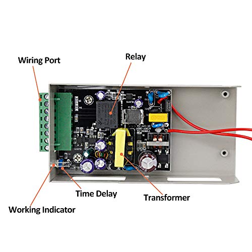 5. Trasformatore in rame ad alta frequenza. Può controllare 1 serratura elettrica, 1 controller di access, 1 telecomando, 1 pulsante di uscita, 1 campanello, ecc.