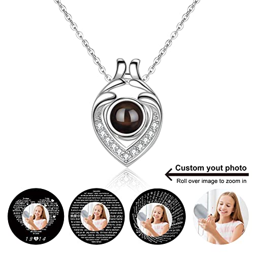 Haellerry Collana con clavicola a forma di cuore d'amore in argento sterling 925, ti amo, collana con ciondolo a proiezione in 100 lingue, regalo di festa per le donne (Bianco argento)