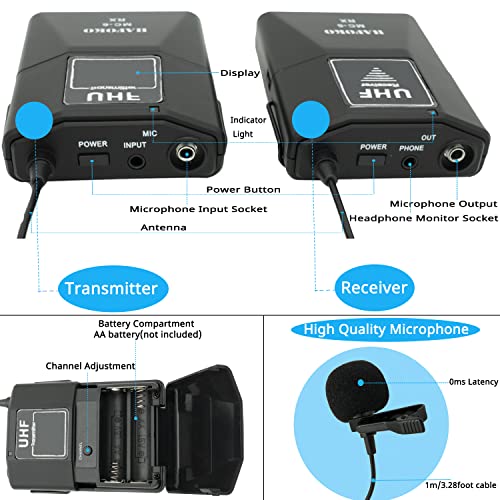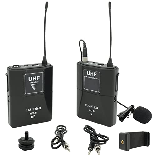 HAFOKO UHF 16 Canali Senza Fili Lavalier Microfono Wireless Videocamera Microfono compatibili per Fotocamere DSLR Videocamera Smartphone per Registrazione Video Programma Insegnamento Intervista