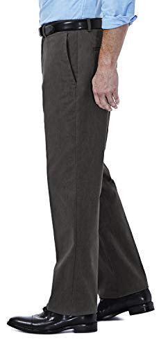 Haggar Men's Expandomatic Casual Stretch Solid Classic Fit Plain Front Pant, Charcoal Heather, 40x32