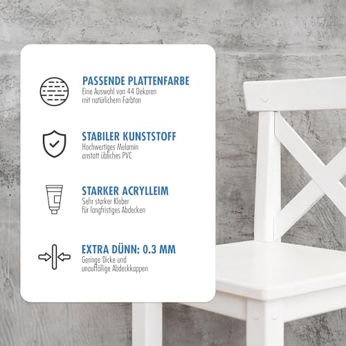 La colla acrilica molto forte garantisce una presa di lunga durata Il piccolo spessore (0,3 mm) è particolarmente discreto sul mobile.