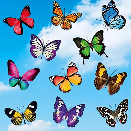 1 clip a farfalla della dimensione giusta: ogni adesivo a forma di farfalla misura circa 5,5 x 6,7 pollici. La dimensione giusta per l'uso su vetri, porte di cortili o finestre a lucernario, per evitare che gli uccelli si battano contro le finestre