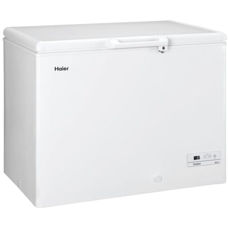 Haier HCE319F. Posizionamento dell'apparecchio: Libera installazione Colore del prodotto: Bianco Materiale ripiano: Metallo. Classe emissione rumore: C Emissione acustica: 43 dB Classe climatica: ST-T. Tipo di lampada: LED. Capacità netta congelatore: 310 L Capacità lorda congelatore: 322 L Capacità di congelamento: 21 kg/24h. Unità di misura della temperatura: °CCongelamento rapido Una funzione intelligente che può essere utilizzata subito dopo avere fatto la spesa per congelare rapidamente i cibi. Grazie a questa funzione gli alimenti raggiungono velocemente lo stato di congelamento conservando così tutte le proprietà organolettiche. Serratura Una pratica serratura mantiene gli alimenti al sicuro. Illuminazione a LED Grazie ad una comoda lampada situata sulla controporta è possibile vedere facilmente il contenuto del congelatore.