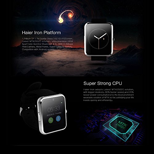 Haier Smart V1 Iron 1.54 "LCD Touch Screen MTK2502 Bluetooth 4.0 di Smart Orologio in tempo reale cardiofrequenzimetro cronometro SMS Fitness Tracker per iPhone 6 6S Samsung HTC LG Smartphone