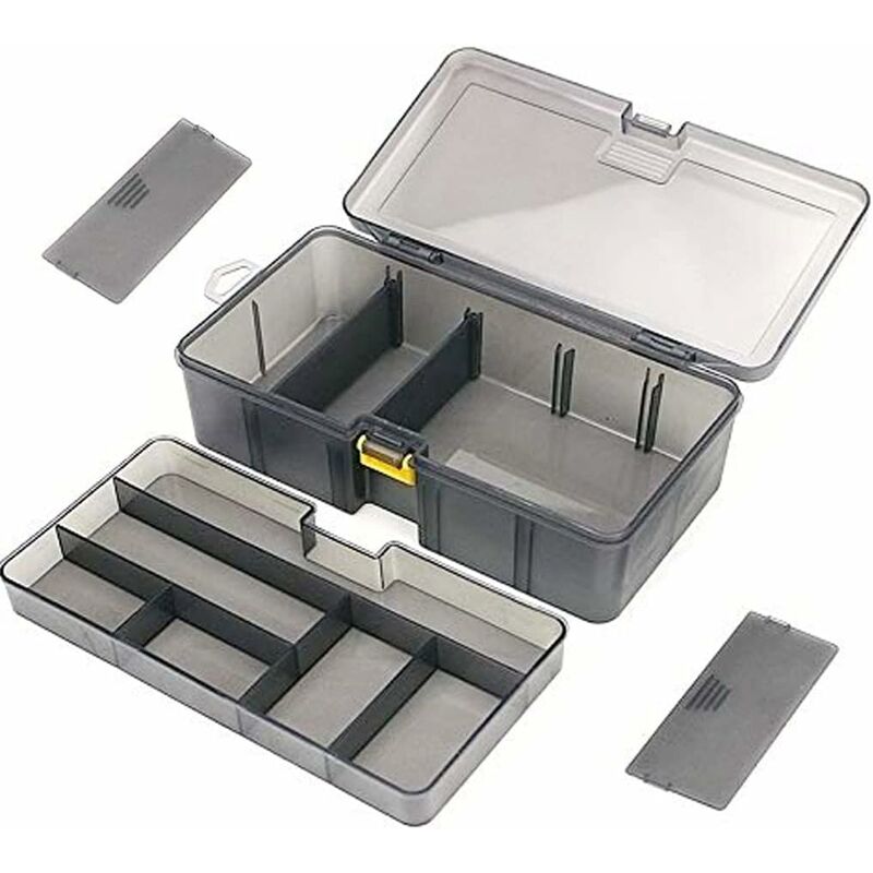 Scatola per attrezzatura da pesca Design dello scomparto pratico Con questa scatola di plastica puoi creare liberamente scomparti di diverse dimensioni in base alle diverse forme di esche. Identificazione rapida Il materiale trasparente ma resistente ti consente di vedere il contenuto della tua cassetta degli attrezzi senza dover sbloccare e aprire il coperchio, rendendo facile trovare e cambiare le esche velocemente e facilmente. Premium e durevole Adotta PP ad alta resistenza senza BPA per l'uso ad alta frequenza ea lungo termine. Specifiche: Dimensioni: 21,5 * 12. * 6,7 / 8,46 * 4,7 * 2,64 pollici Strati: 2 Materiale: ABS e PP Scomparti Quantita: 11