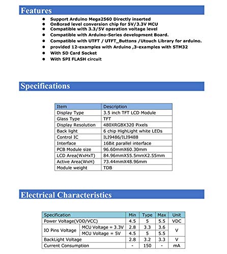 Hailege 3.5 inch IPS TFT LCD Display ILI9486/ILI9488 480x320 36 Pins for Arduino MEGA