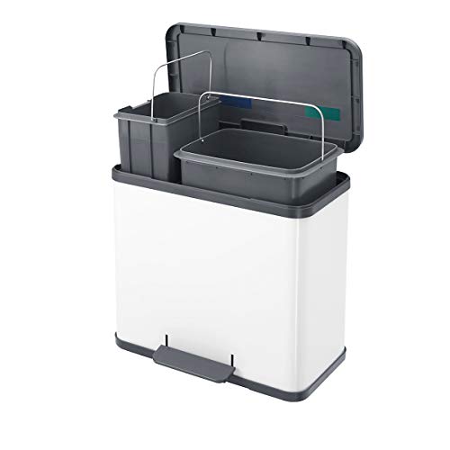 Hailo 0630 - 100 Profiline Solid Oeko Duo L, muelltrenner in lamiera di acciaio/plastica, 17 + 9 litri, 2 secchi interni rimovibili singolarmente, Deckel ammortizzazione (Soft Close), made in Germany, Bianco, L